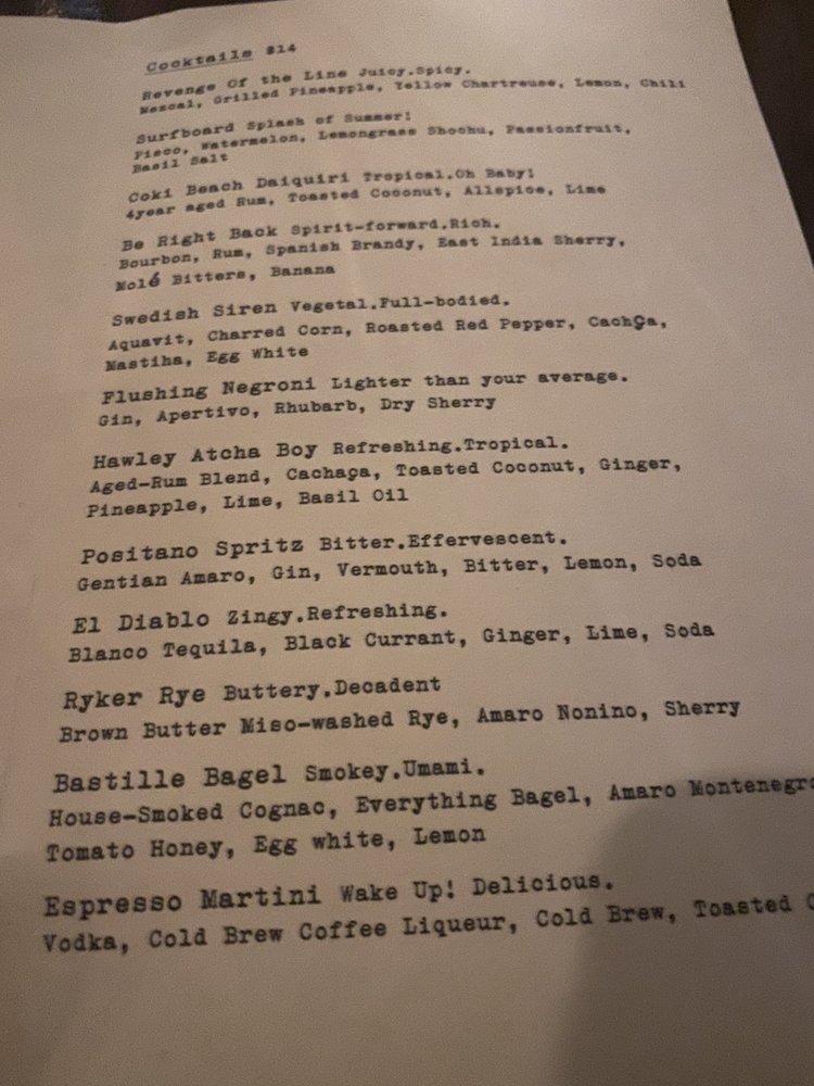 Welcome to Otis, a gem nestled in Bushwick, where New American cuisine meets craft cocktails in an inviting atmosphere. The menu is an exciting blend of innovative dishes that showcase seasonal ingredients and creative flavor pairings. Start your culinary journey with the Italian Burrata, paired beautifully with housemade focaccia, or try the Market Melon Salad for a fresh twist.